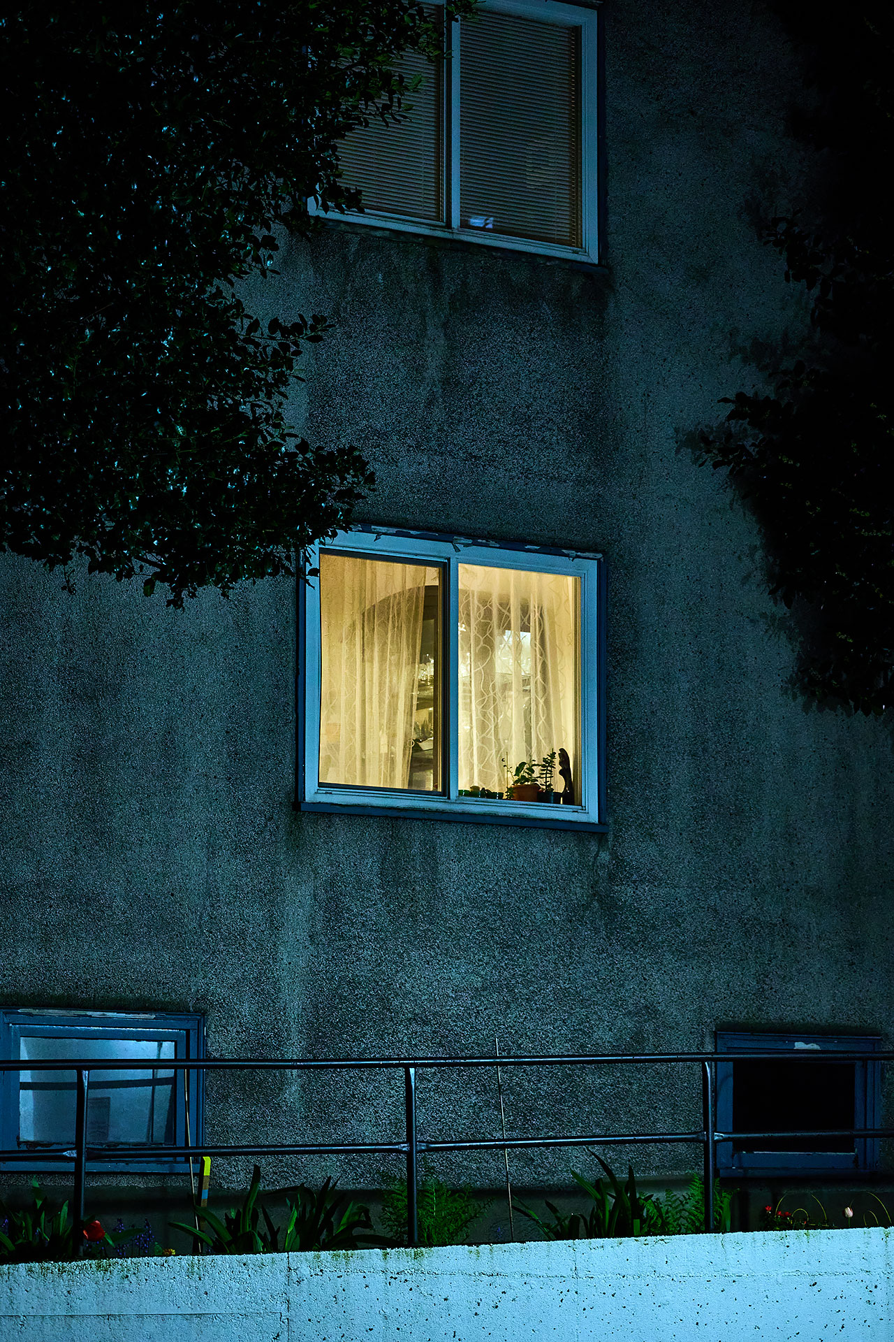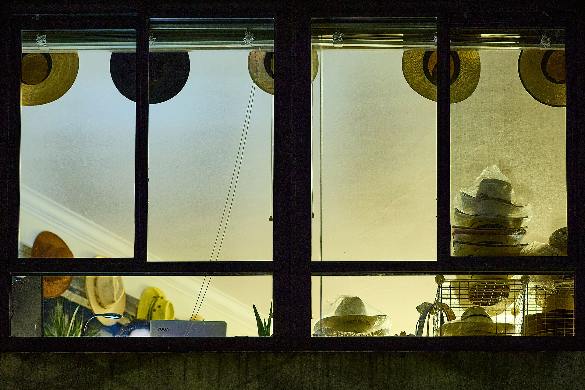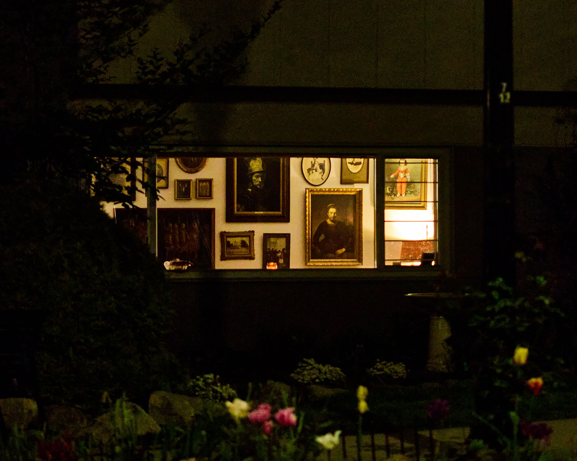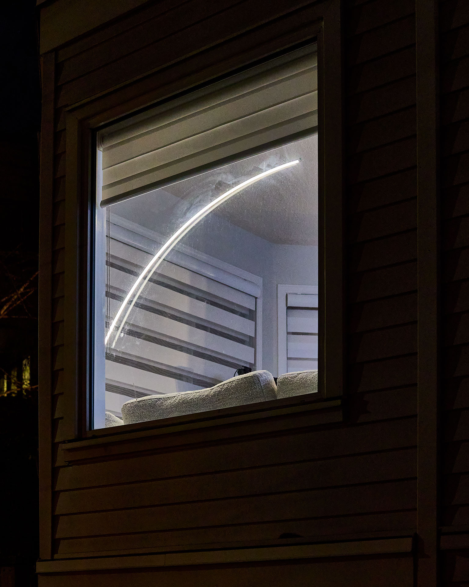 We all do it. We look in people’s windows as we walk down the street. Living in Vancouver’s West End neighbourhood – a neighbourhood of apartment buildings – you can’t help but look up at a lit window as you walk by. The act feels transgressive. But, from the sidewalk, the view is acute and you can’t actually see in. The frame of the window becomes an abstract parallelogram where only ceilings, light fixtures, tall plants, tall furniture, and window sill detritus present themselves to you. Your transgression is made innocent by the negation of real access.
