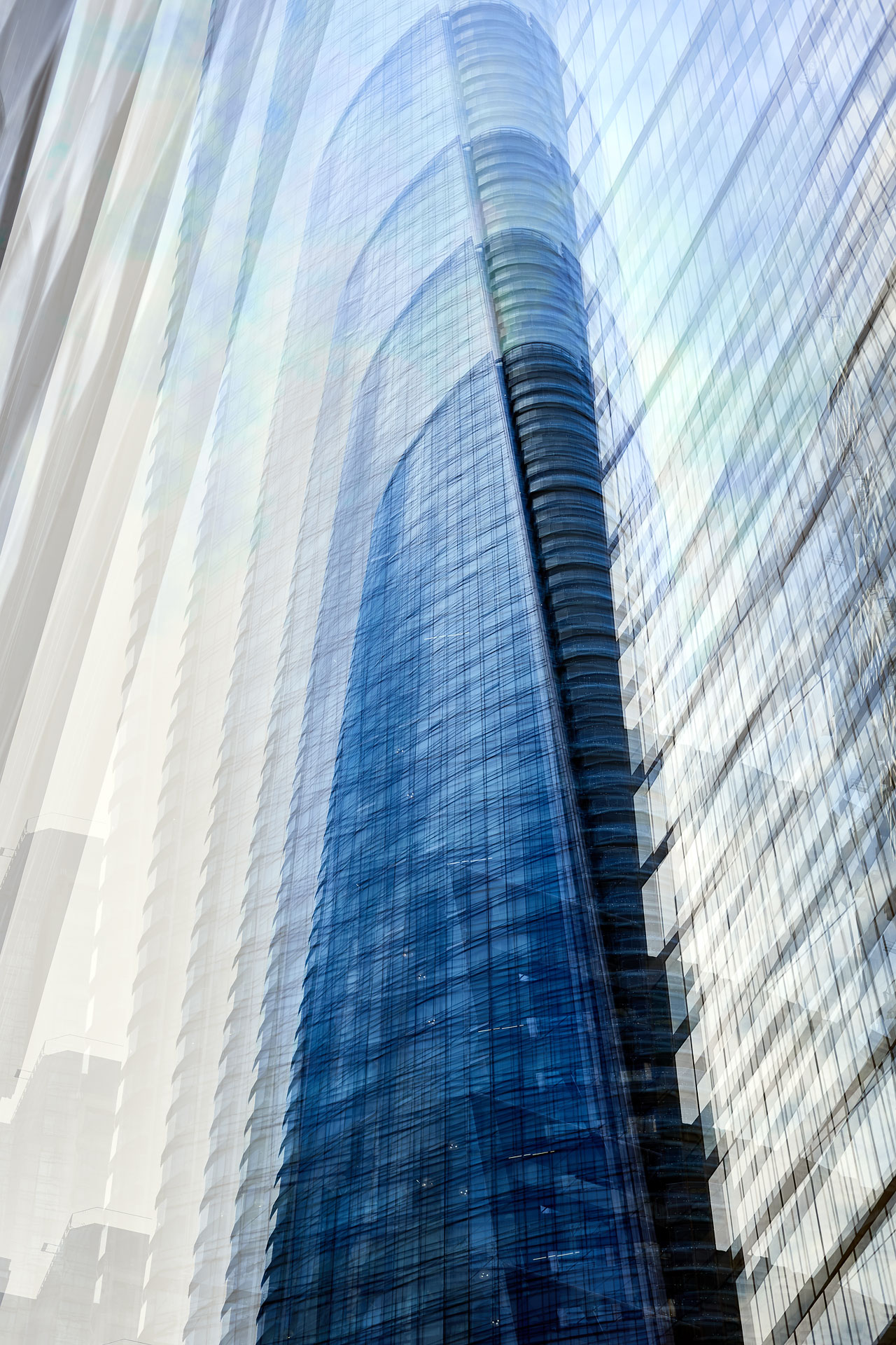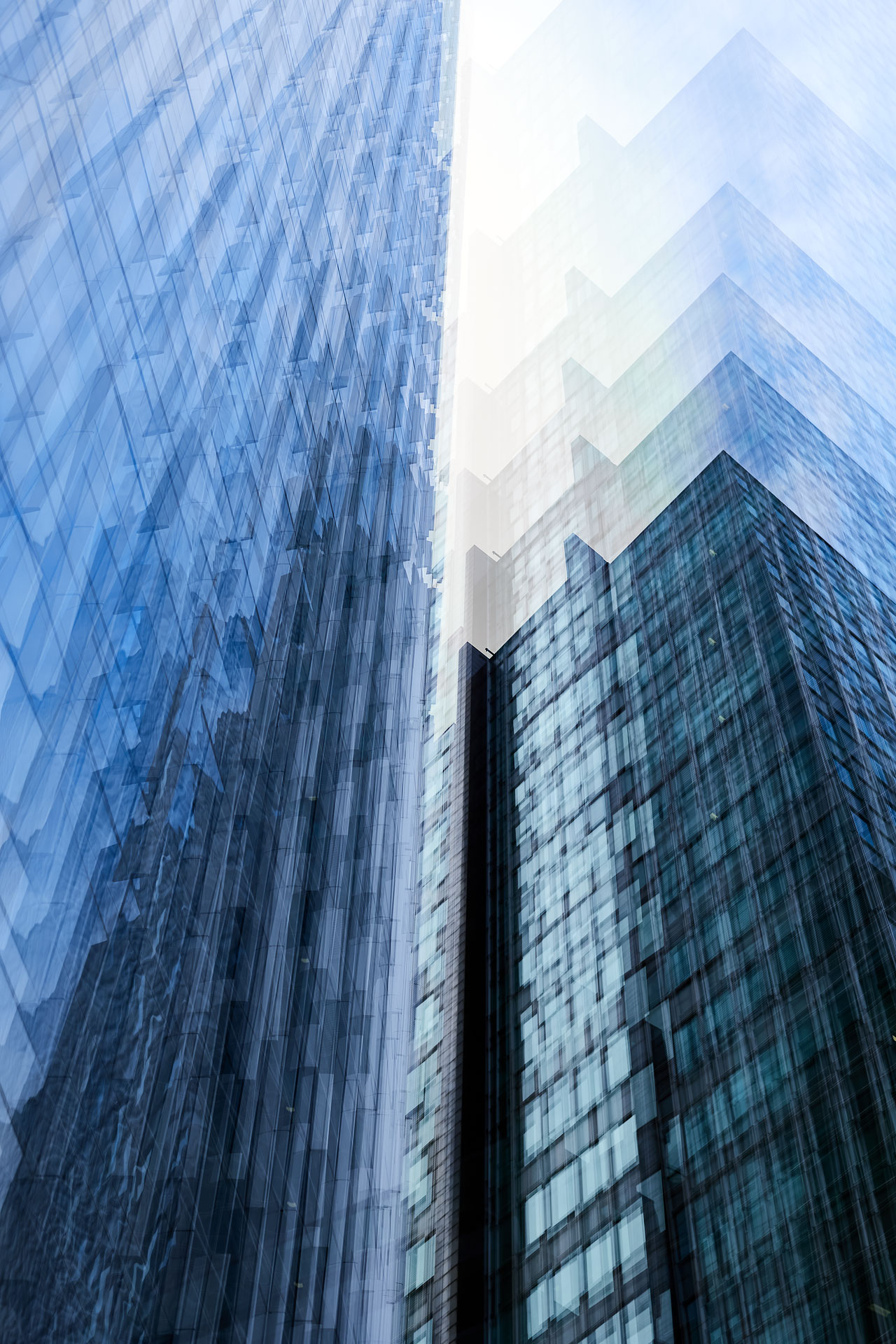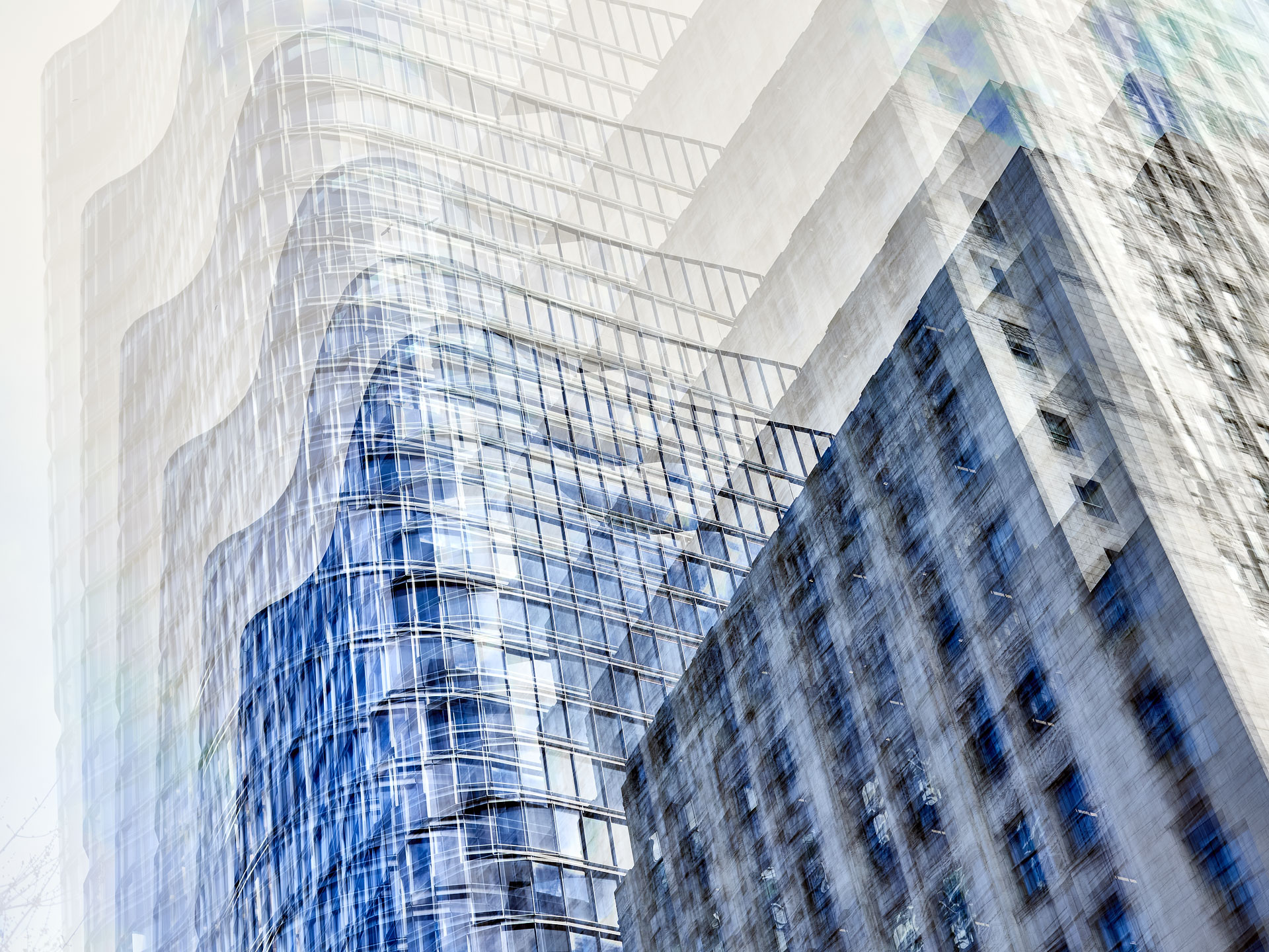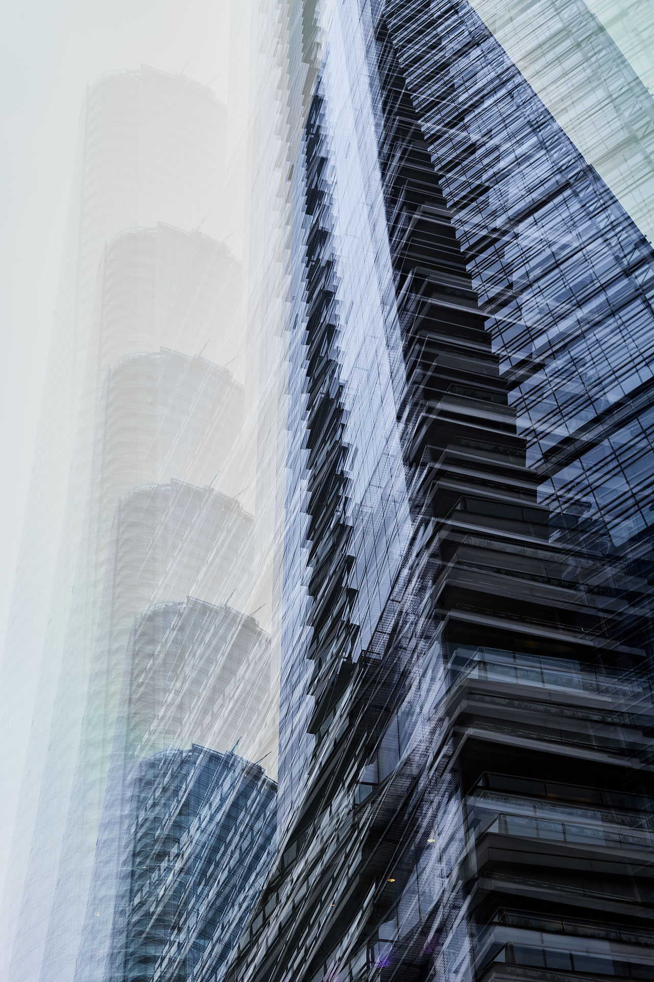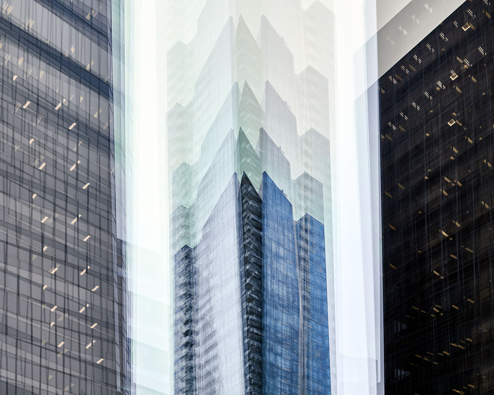 Using the multiple exposure features in-camera I “painted” buildings with the camera. The process is both additive and reductive, highlighting some features while obliterating others, to create images that express the city in a new and dynamic way.