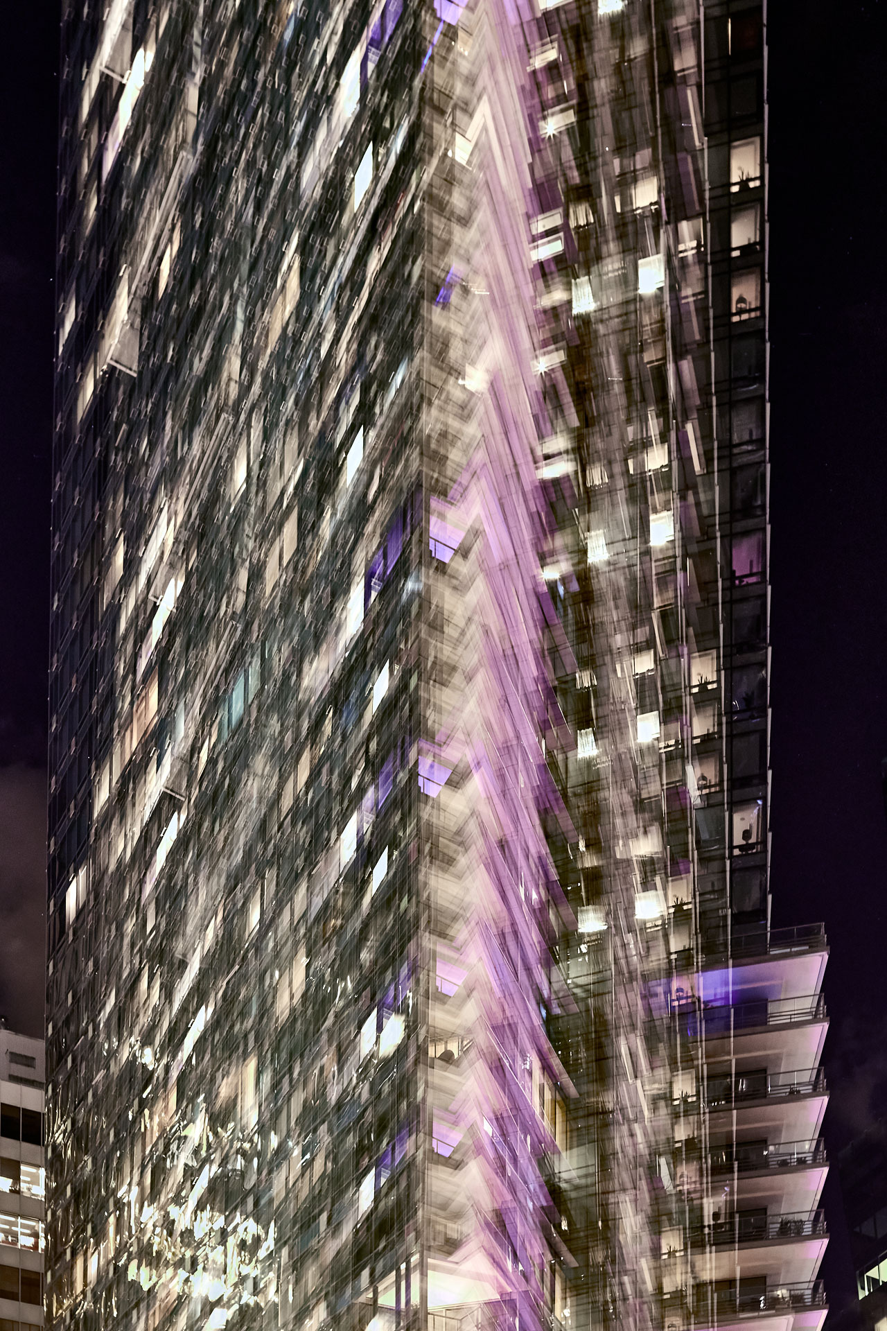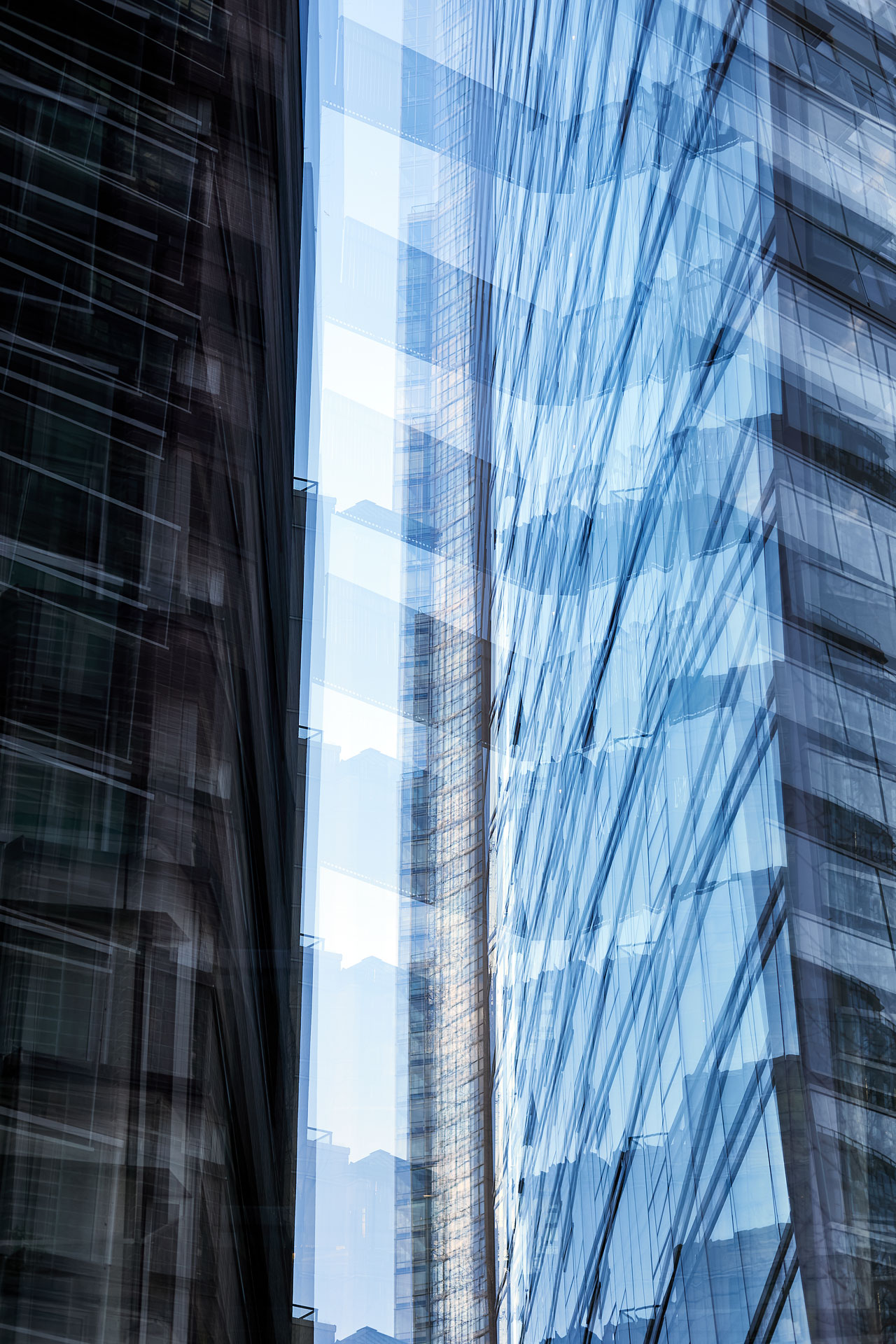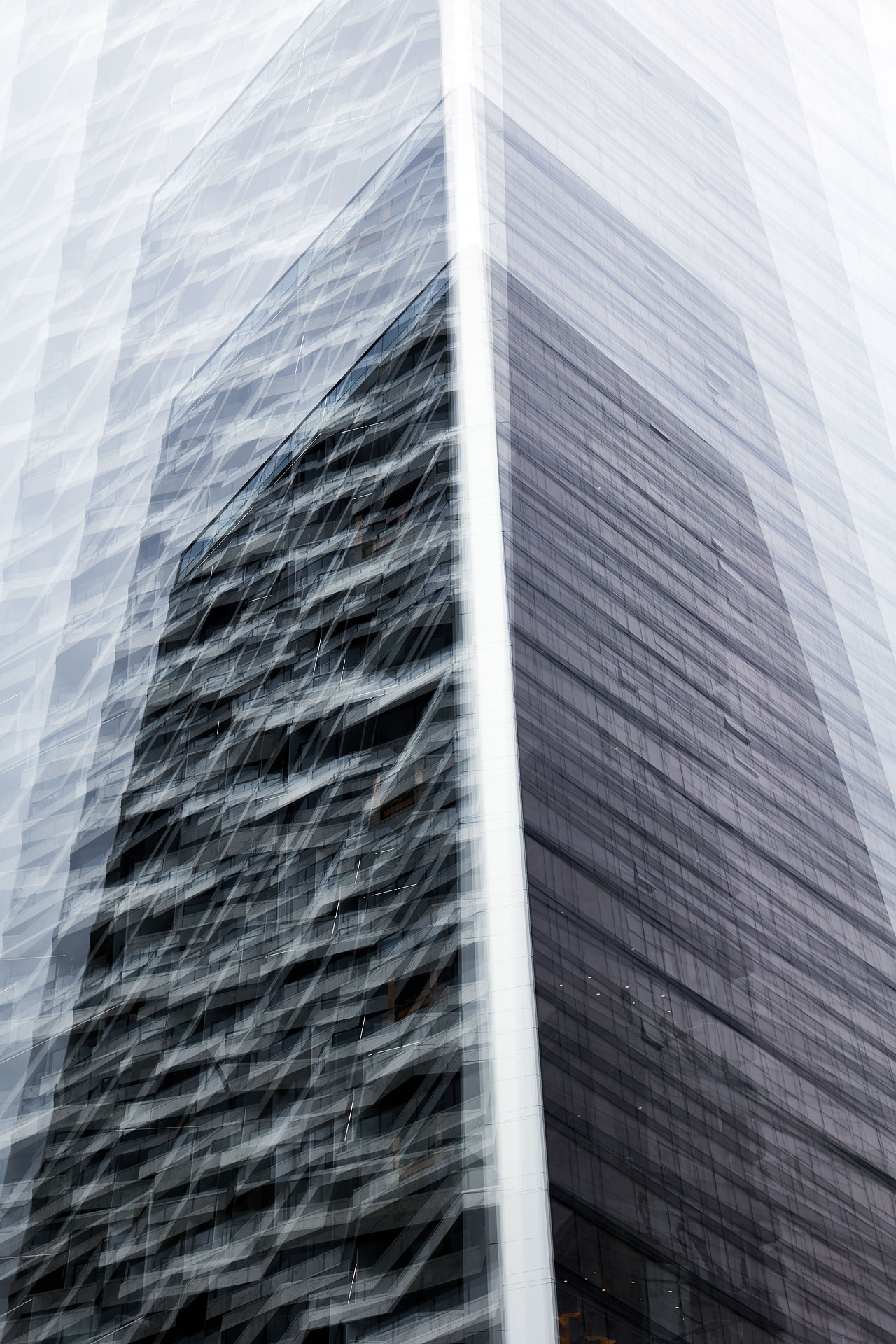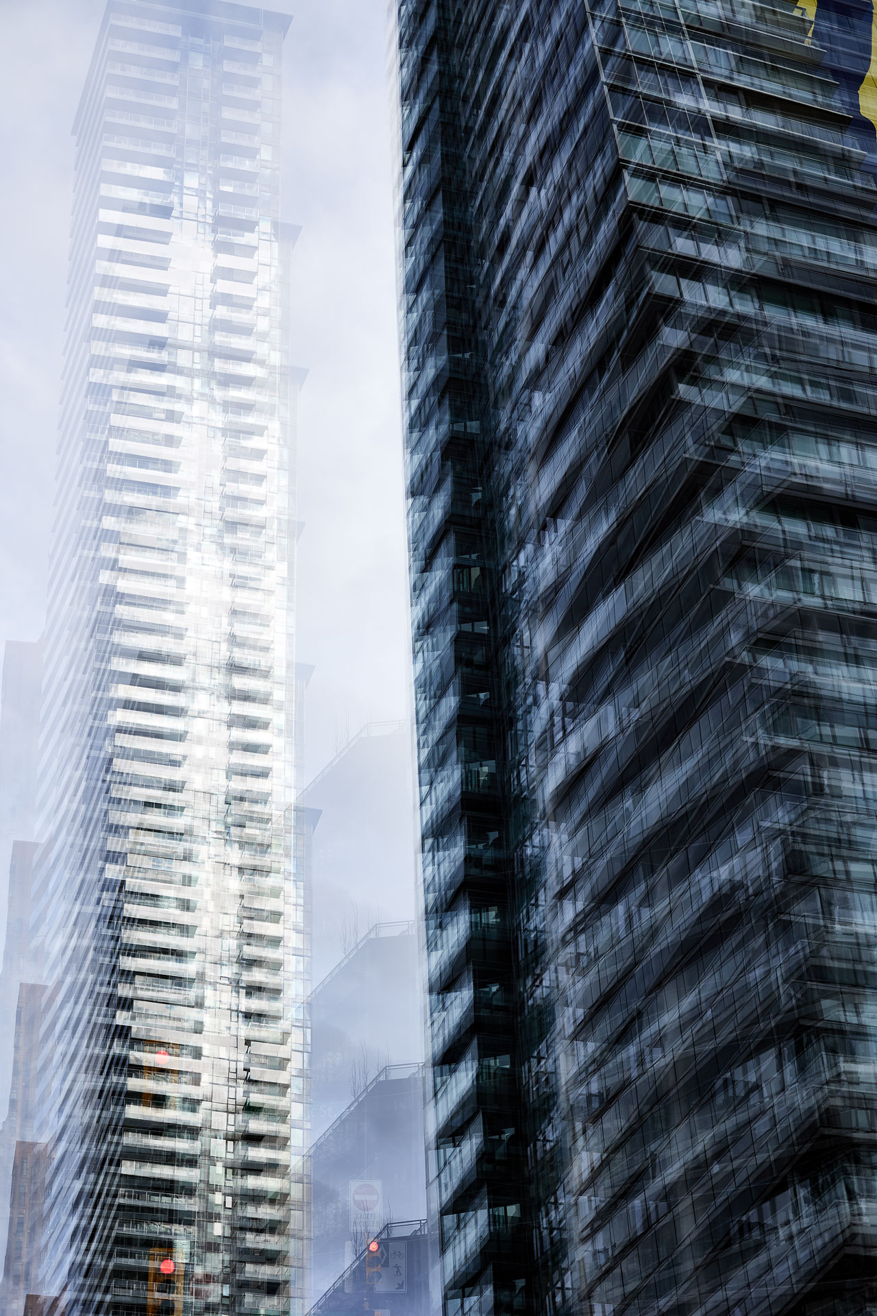 Using the multiple exposure features in-camera I “painted” buildings with the camera. The process is both additive and reductive, highlighting some features while obliterating others, to create images that express the city in a new and dynamic way.