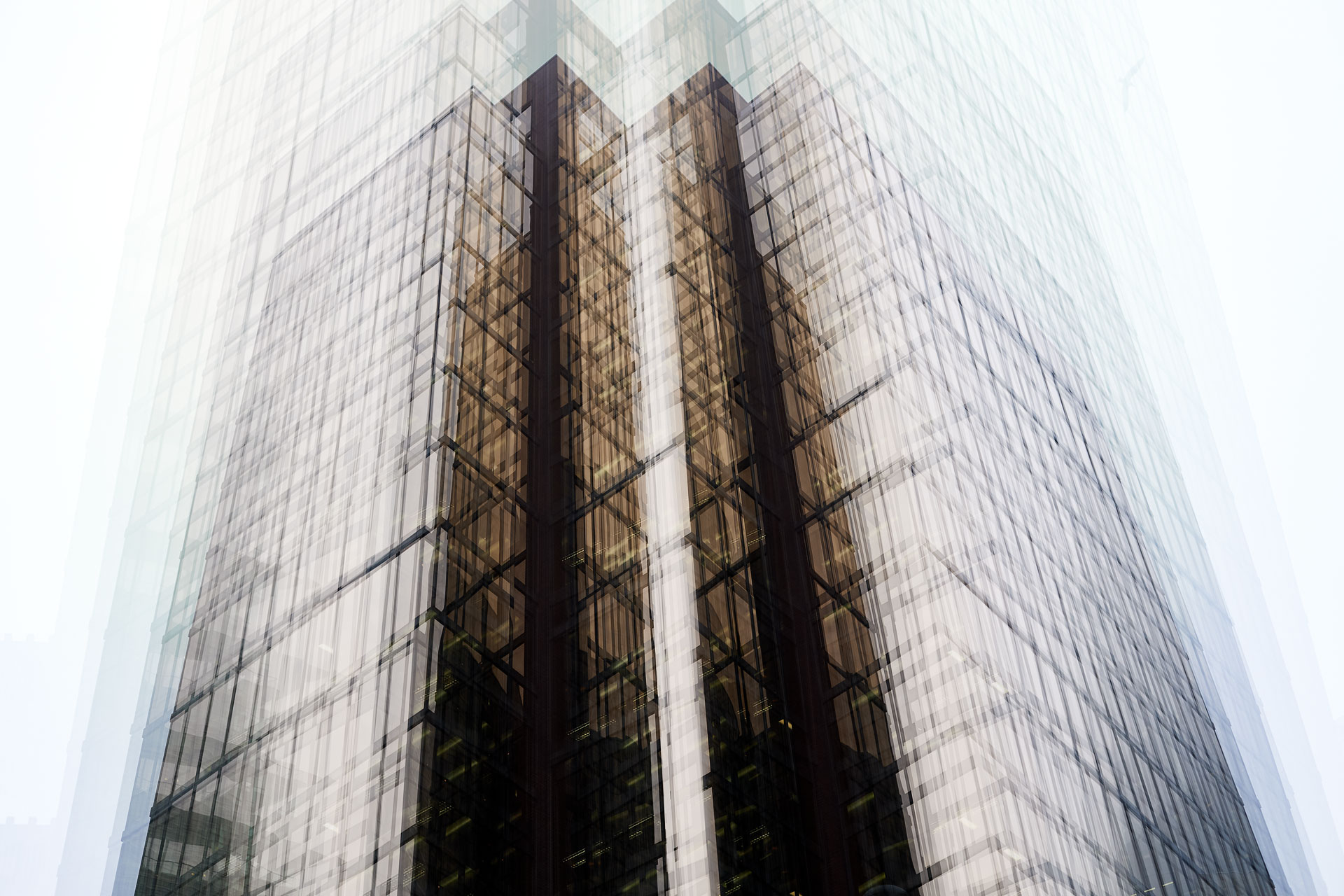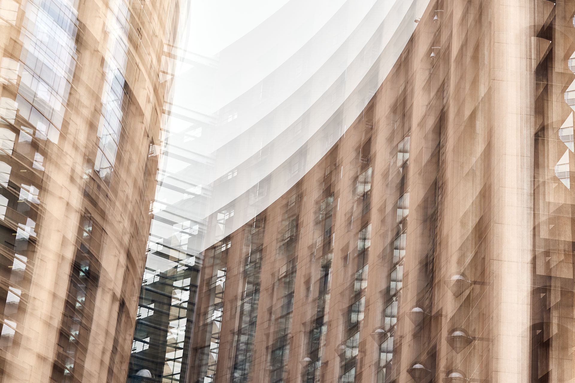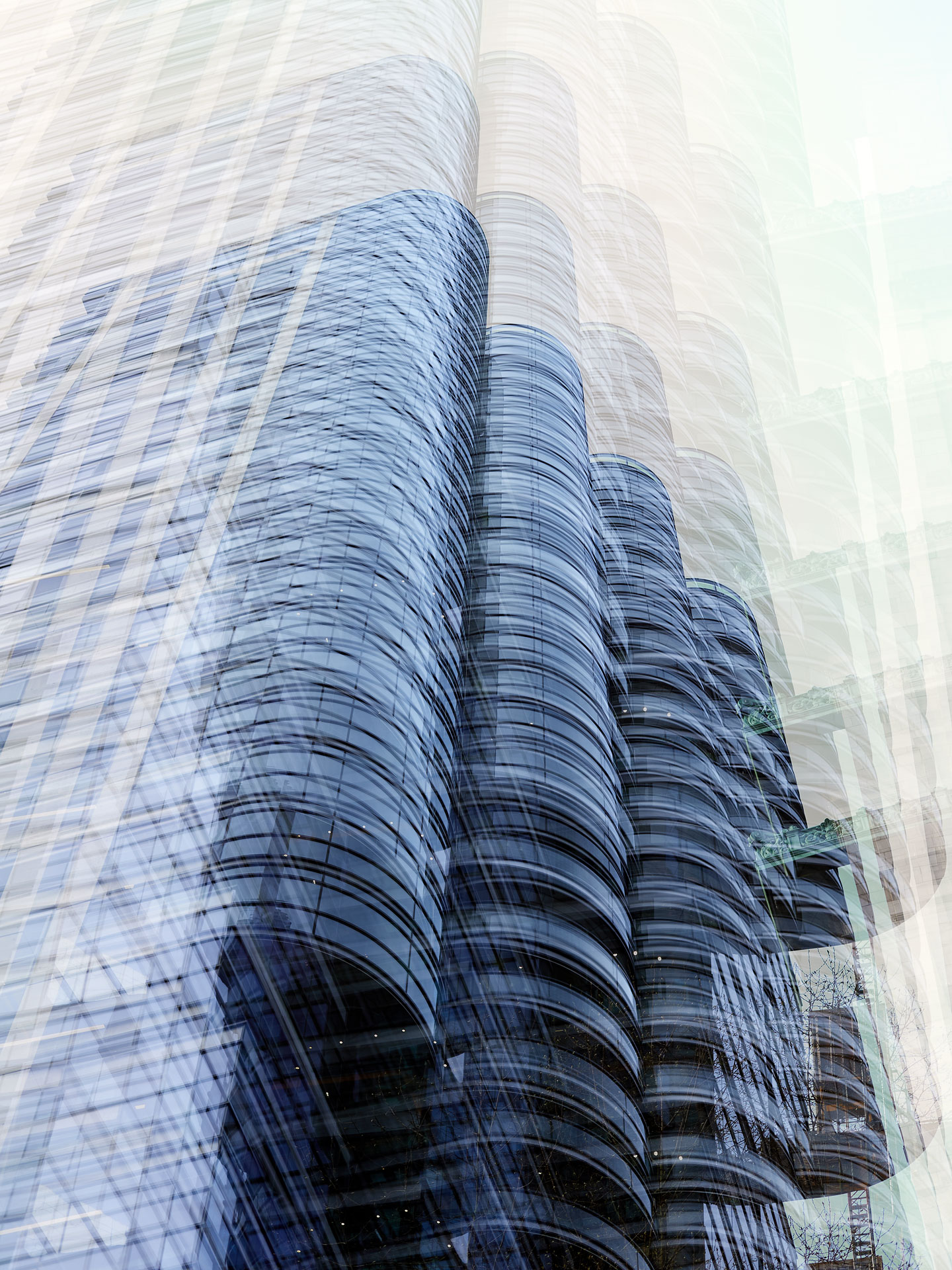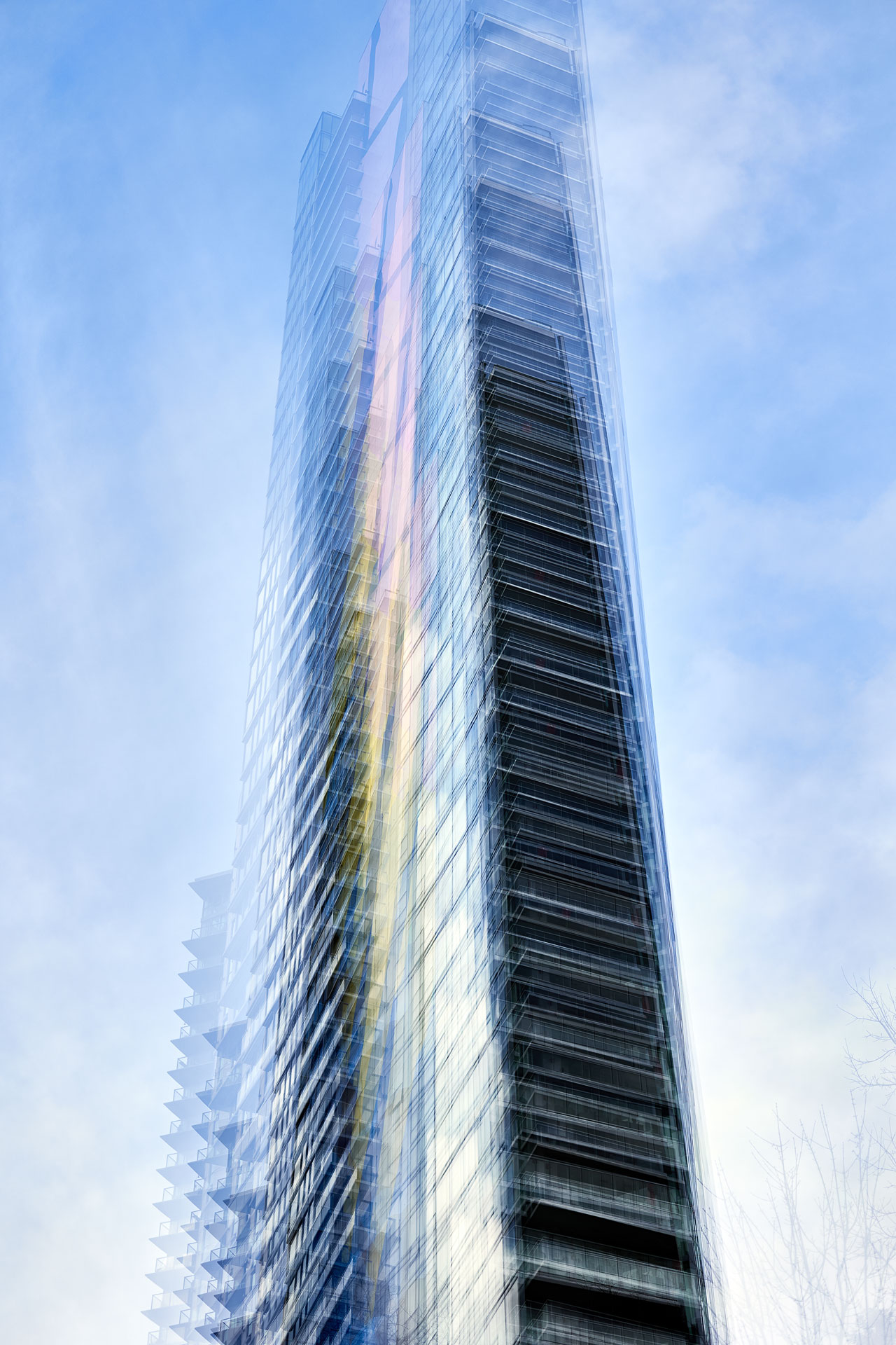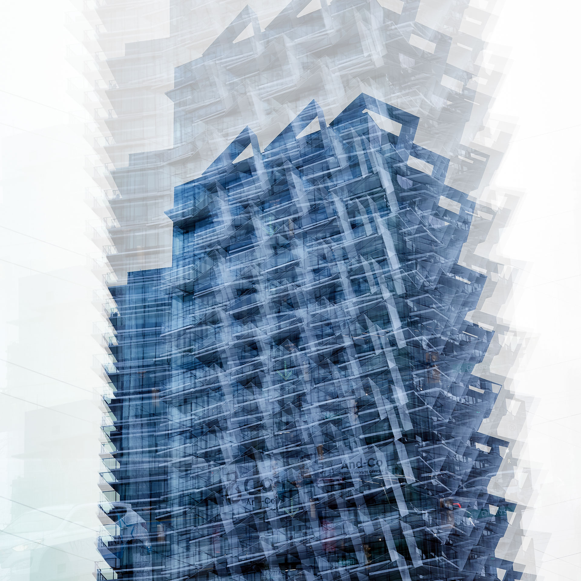 Using the multiple exposure features in-camera I “painted” buildings with the camera. The process is both additive and reductive, highlighting some features while obliterating others, to create images that express the city in a new and dynamic way.