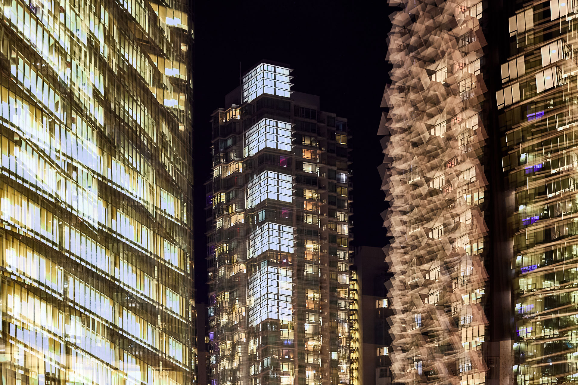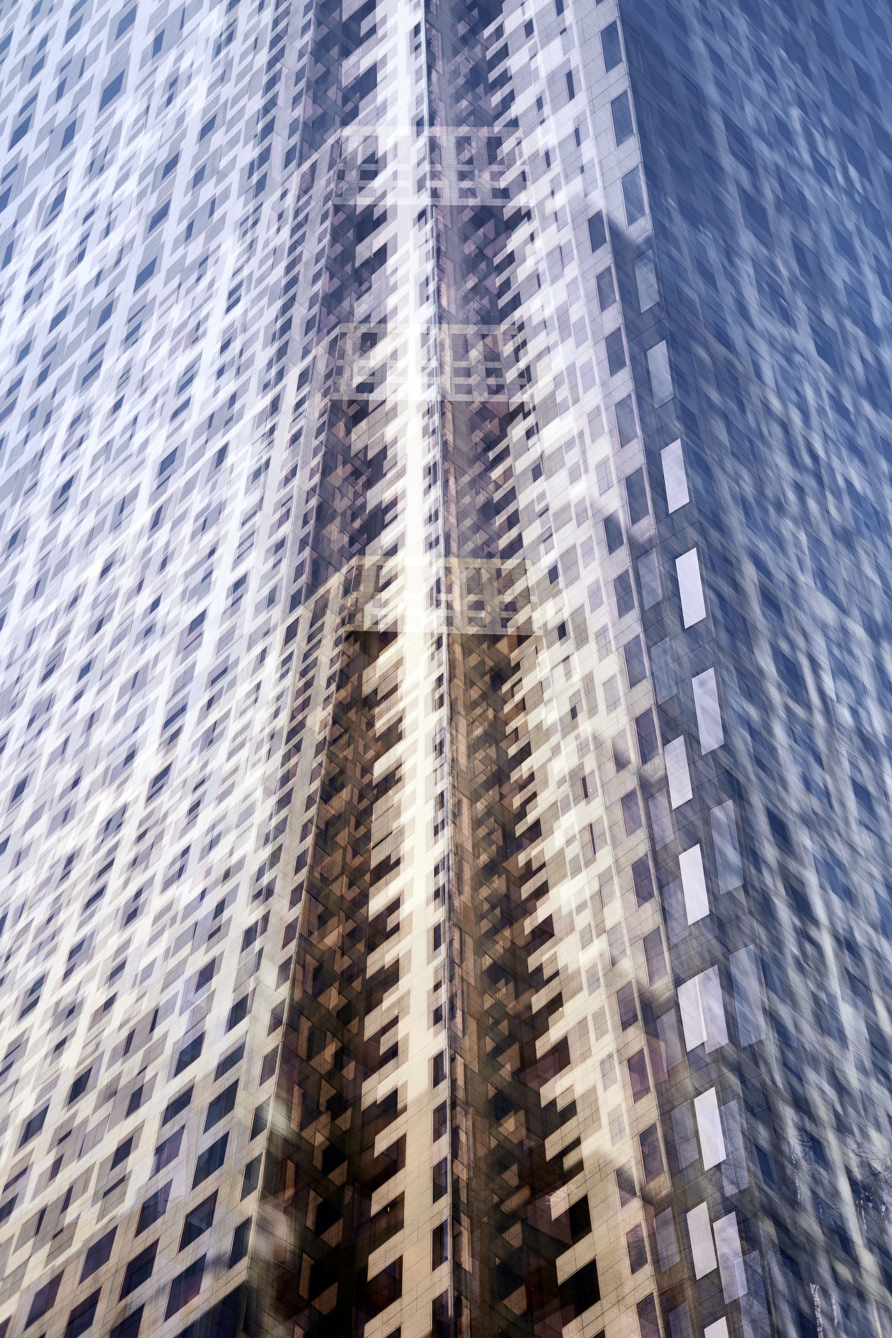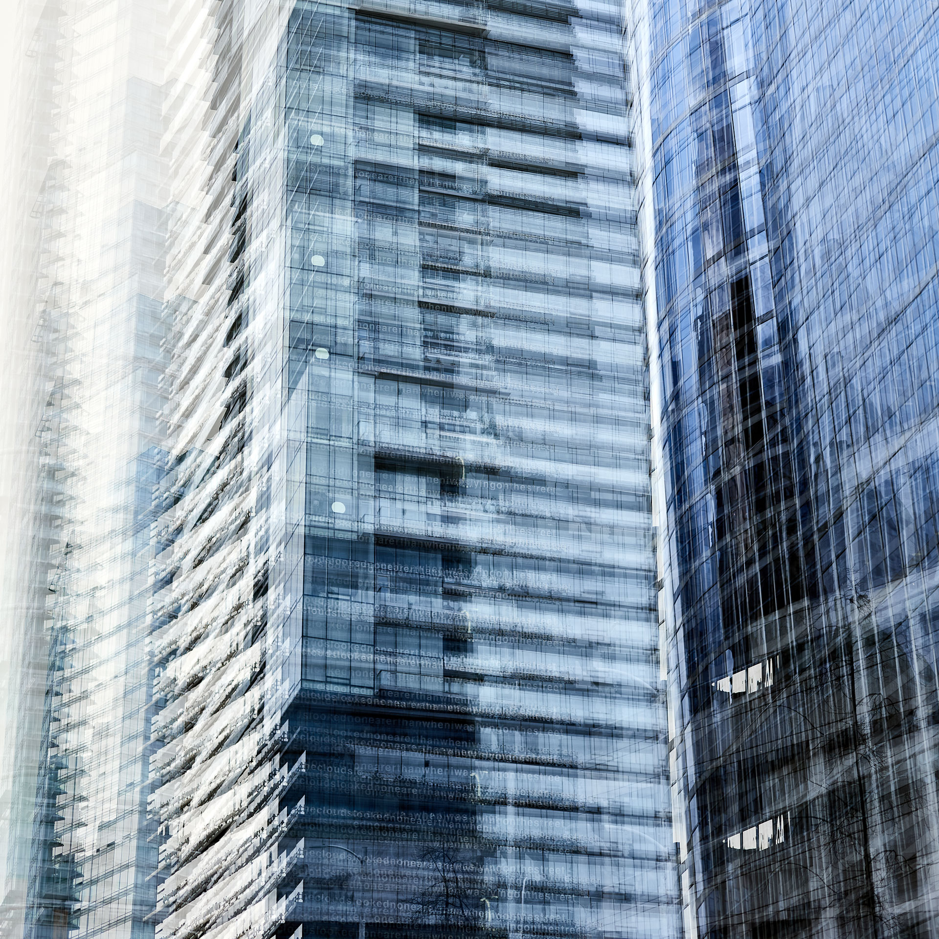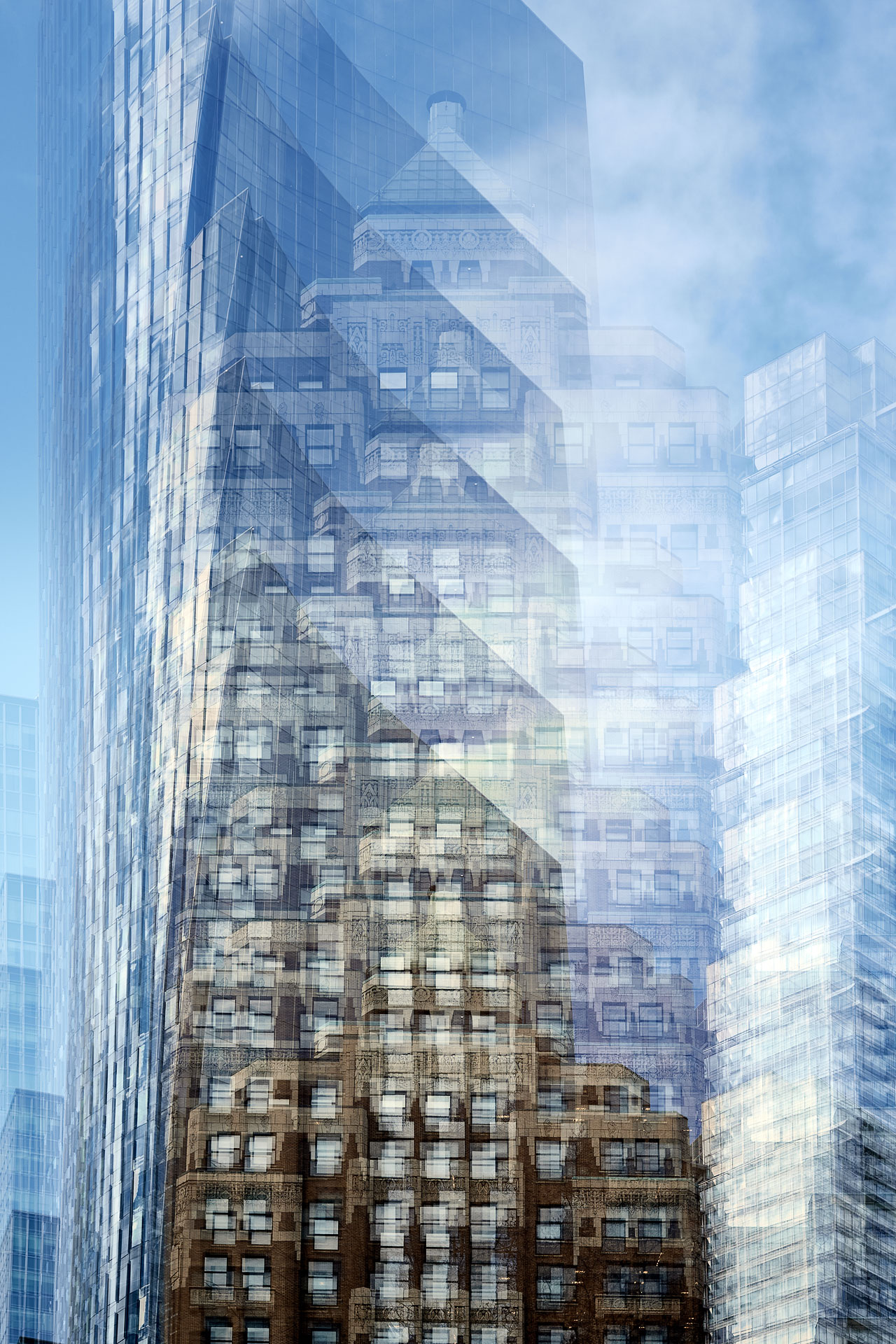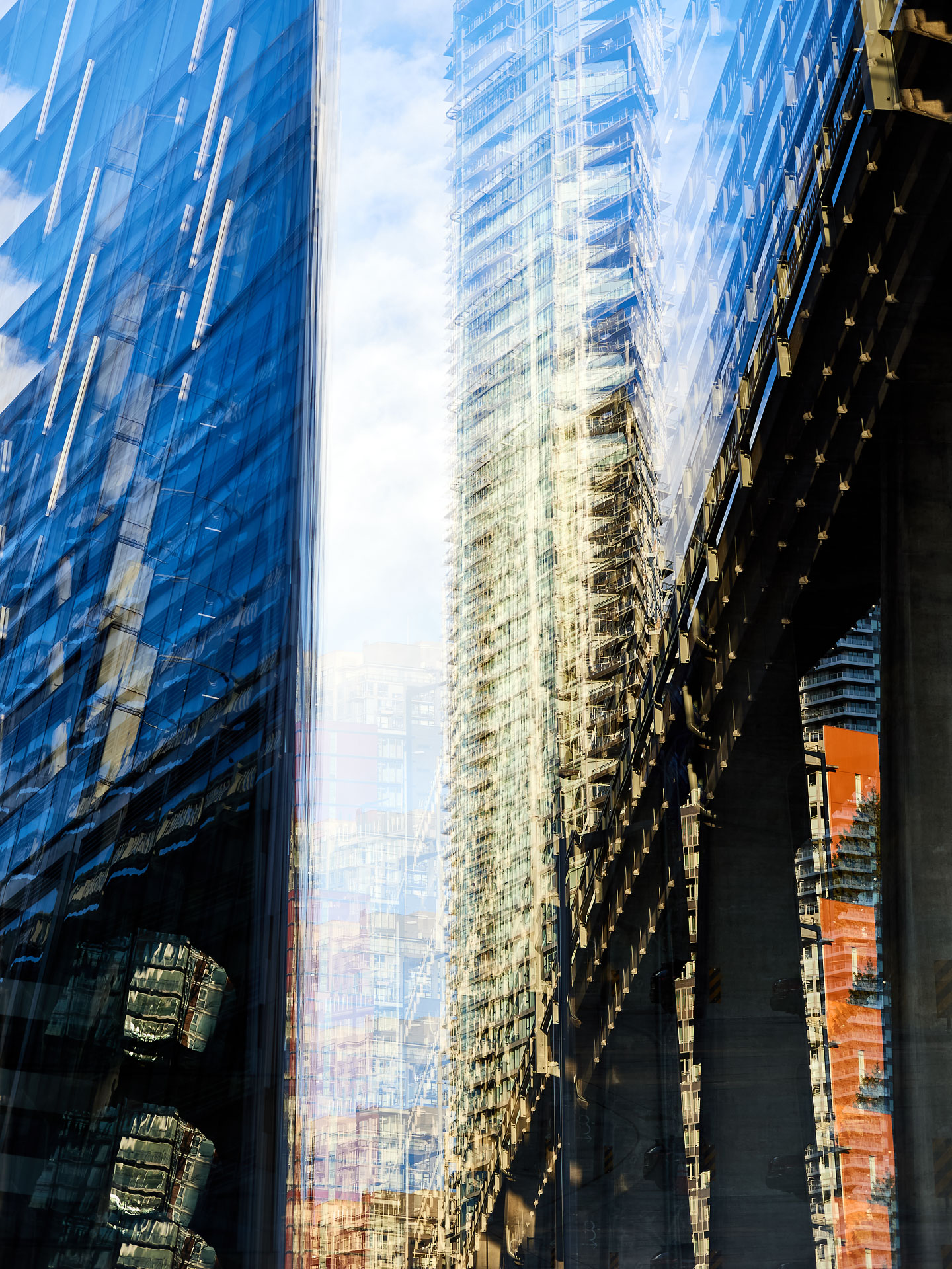 Using the multiple exposure features in-camera I “painted” buildings with the camera. The process is both additive and reductive, highlighting some features while obliterating others, to create images that express the city in a new and dynamic way.