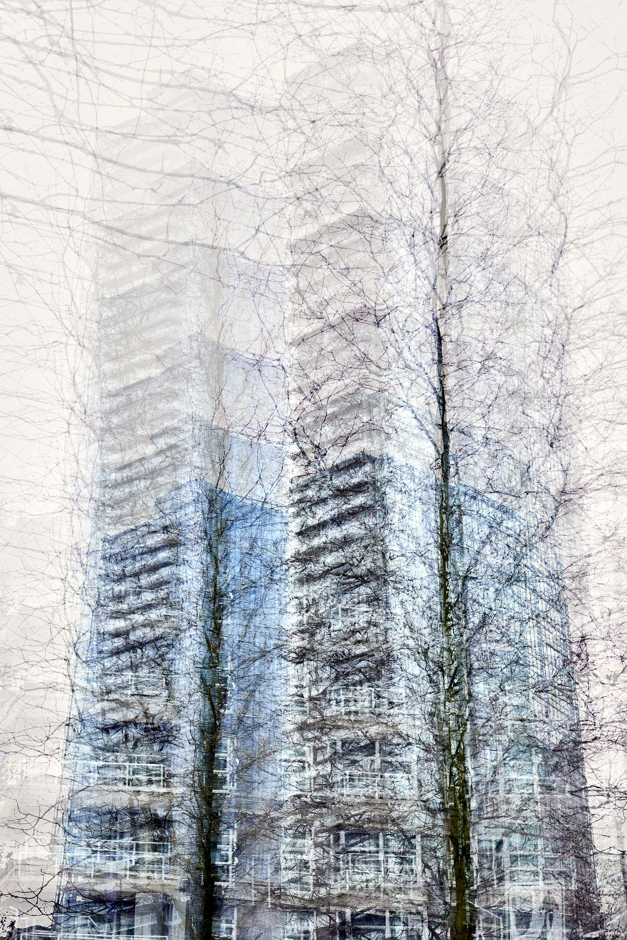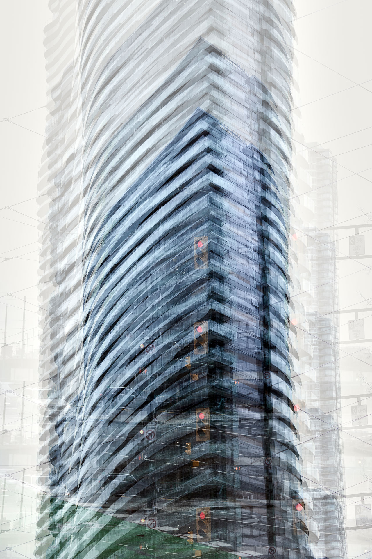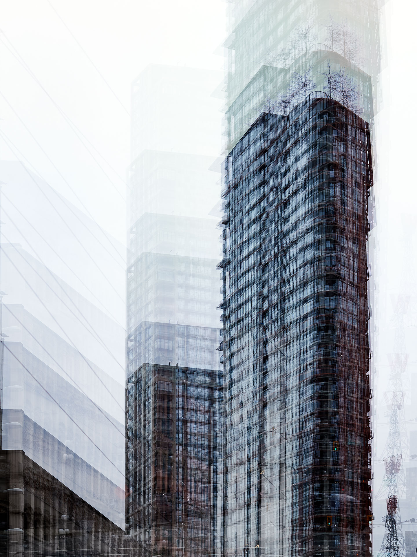I am always looking for new ways to see using the camera and taking advantage of the opportunities the camera offers for new forms of visual representation. With Superstructures, the subject matter was my own city – Vancouver, Canada – where additions to the skyline are an ongoing concern. The initial results were exciting – reminding me of the Mies van der Rohe drawing for his proposed skyscraper from the 1920’s.