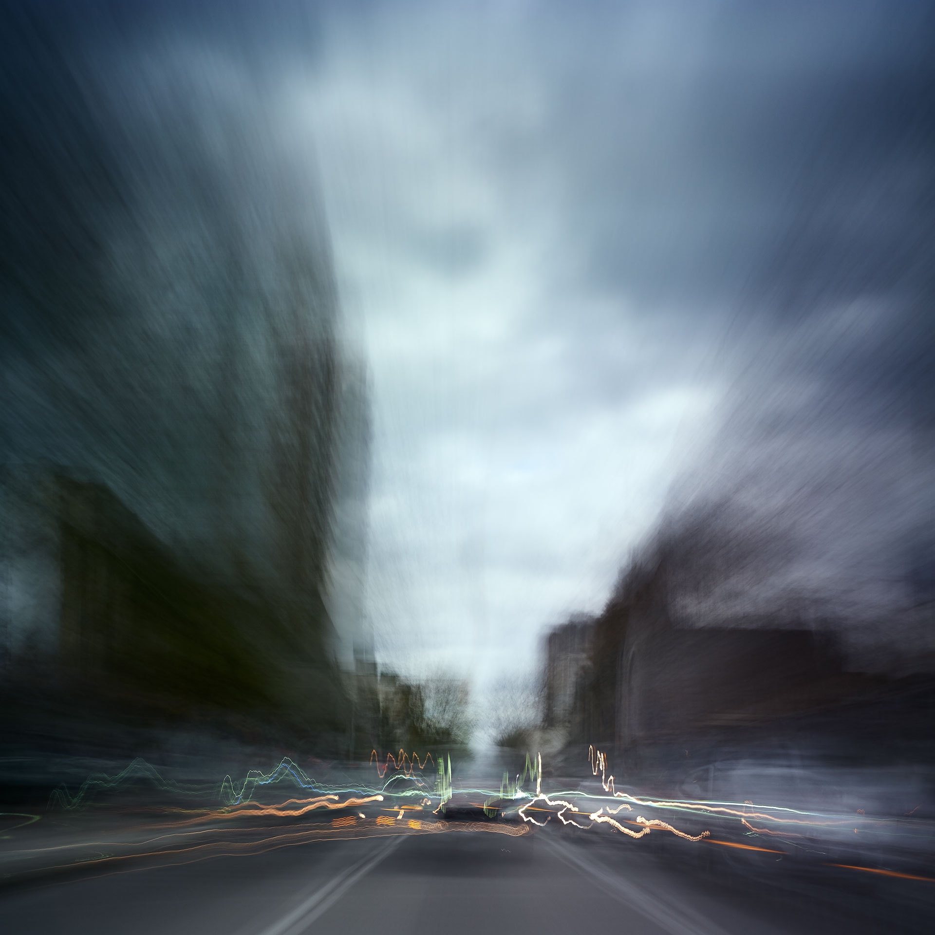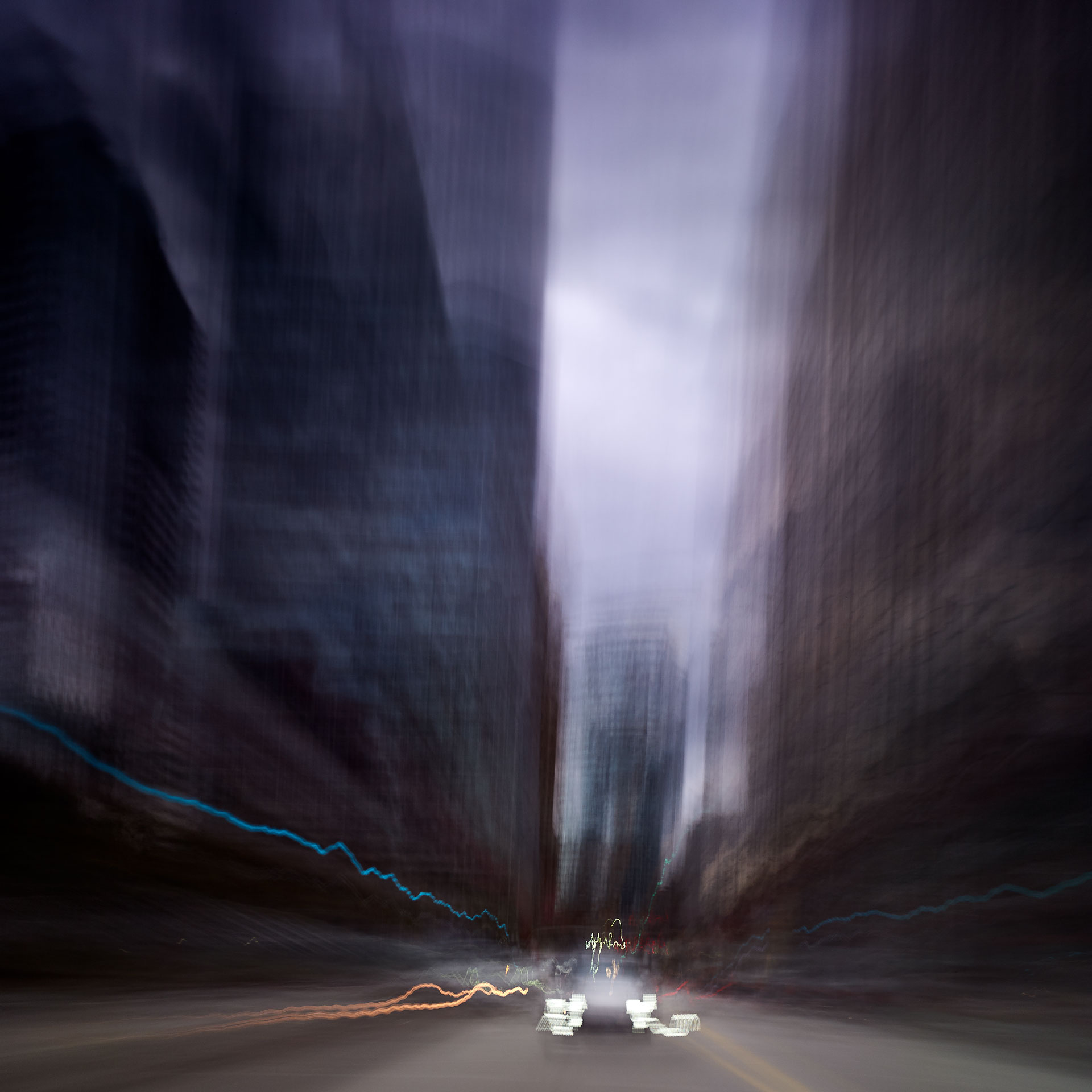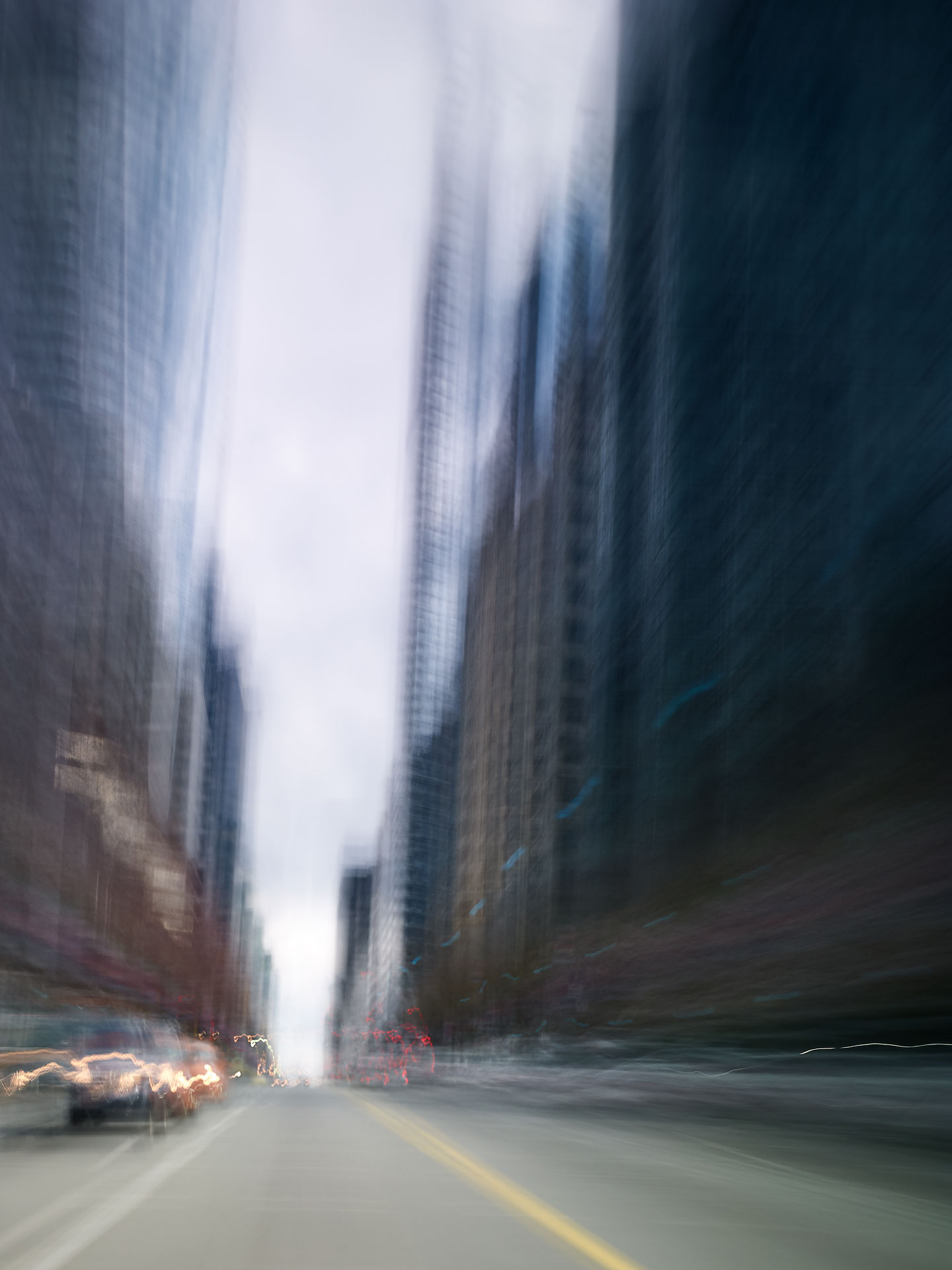 ‘Time Passages’ is a continuing series of long-exposure photos split into several categories, ‘Mountains’, ‘Cities’, ‘Hulls’, ‘Trains’, and others, taken from the decks of passenger ferries, trains, and vehicles in motion as they pass along their routes; and is, in essence, painting with the camera.