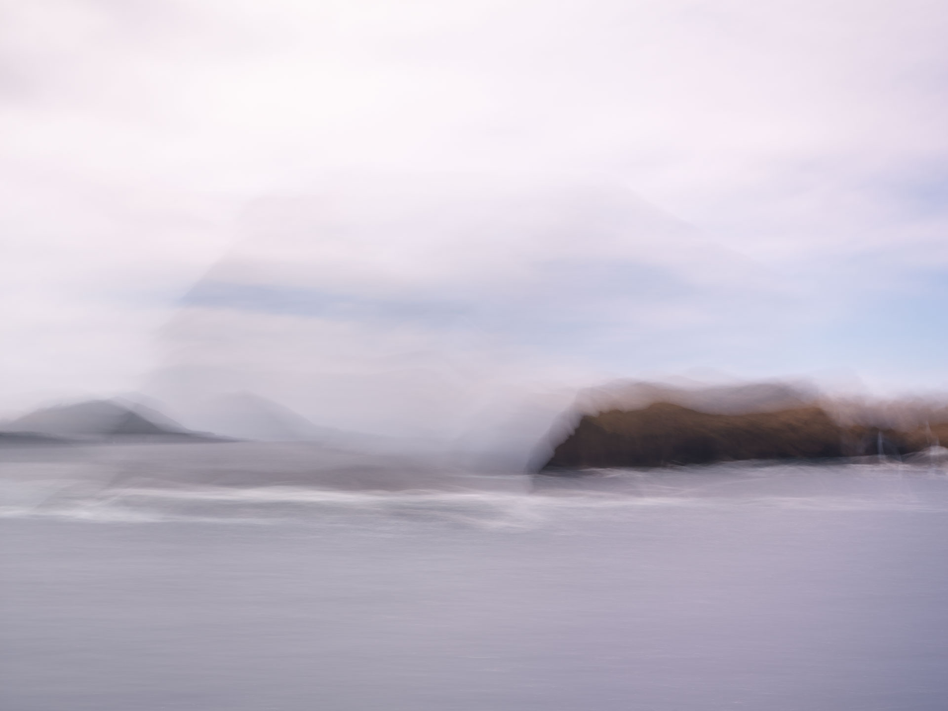 ‘Time Passages’ is a continuing series of long-exposure photos split into several categories, ‘Mountains’, ‘Cities’, ‘Hulls’, ‘Trains’, and others, taken from the decks of passenger ferries, trains, and vehicles in motion as they pass along their routes; and is, in essence, painting with the camera.