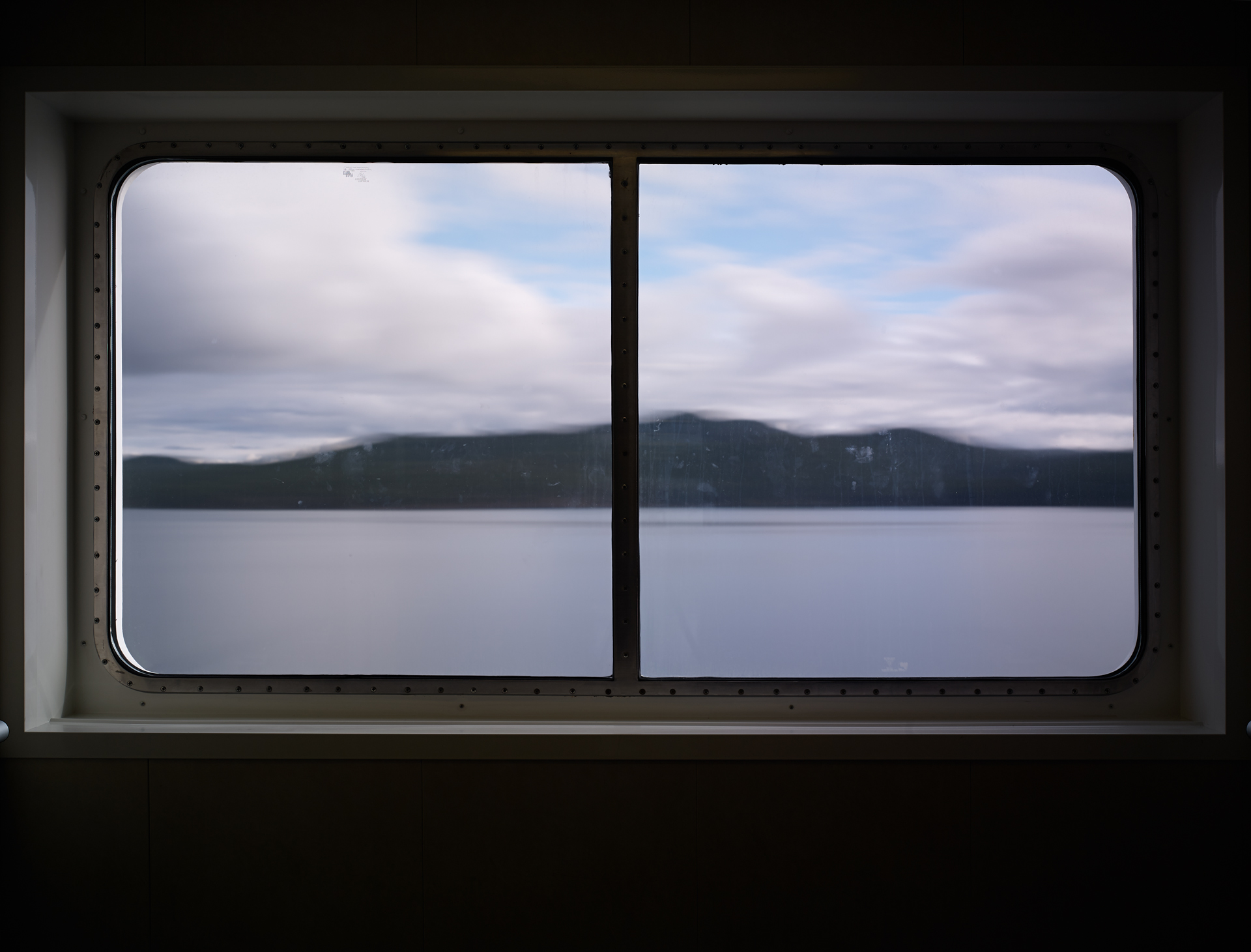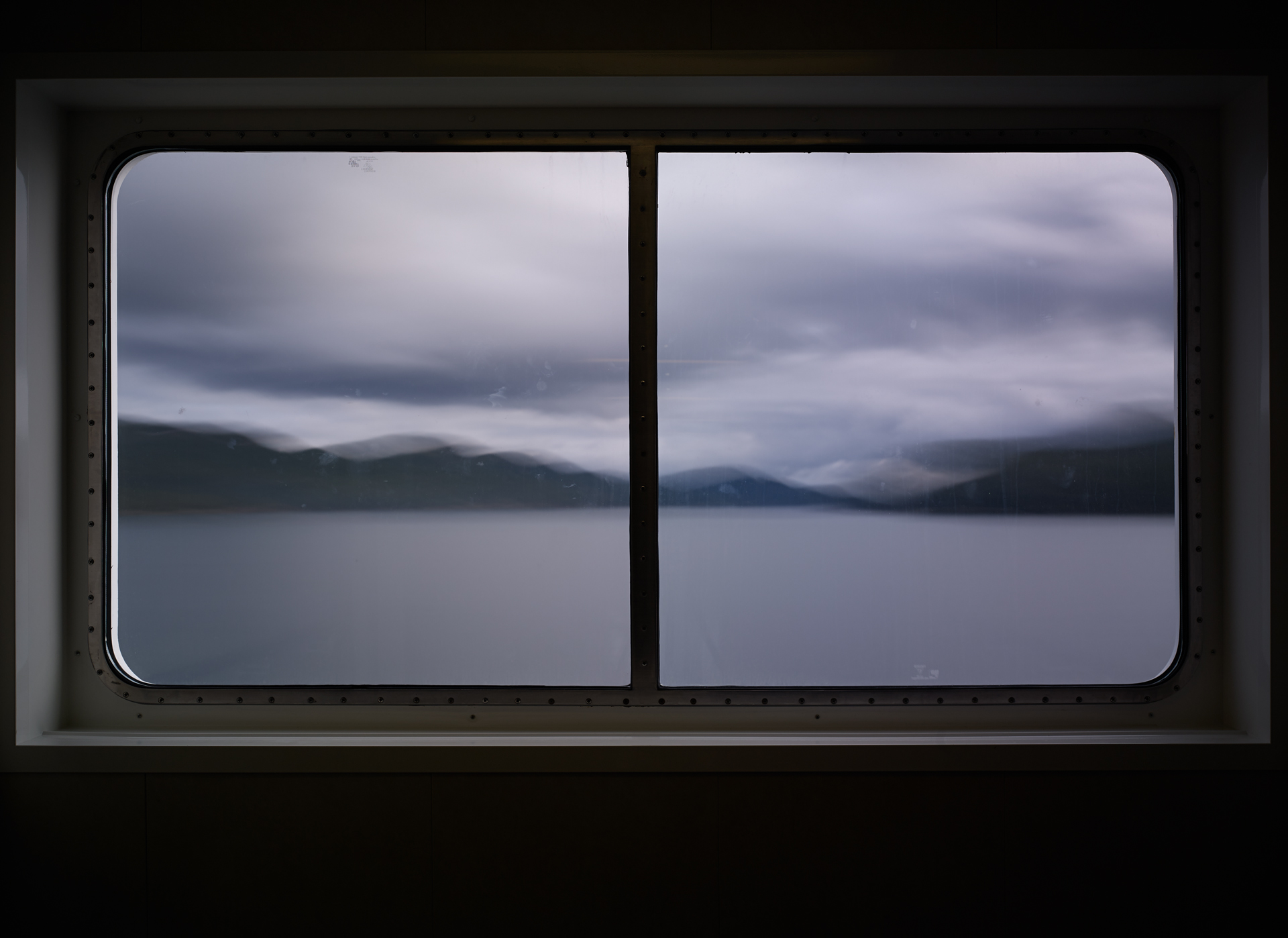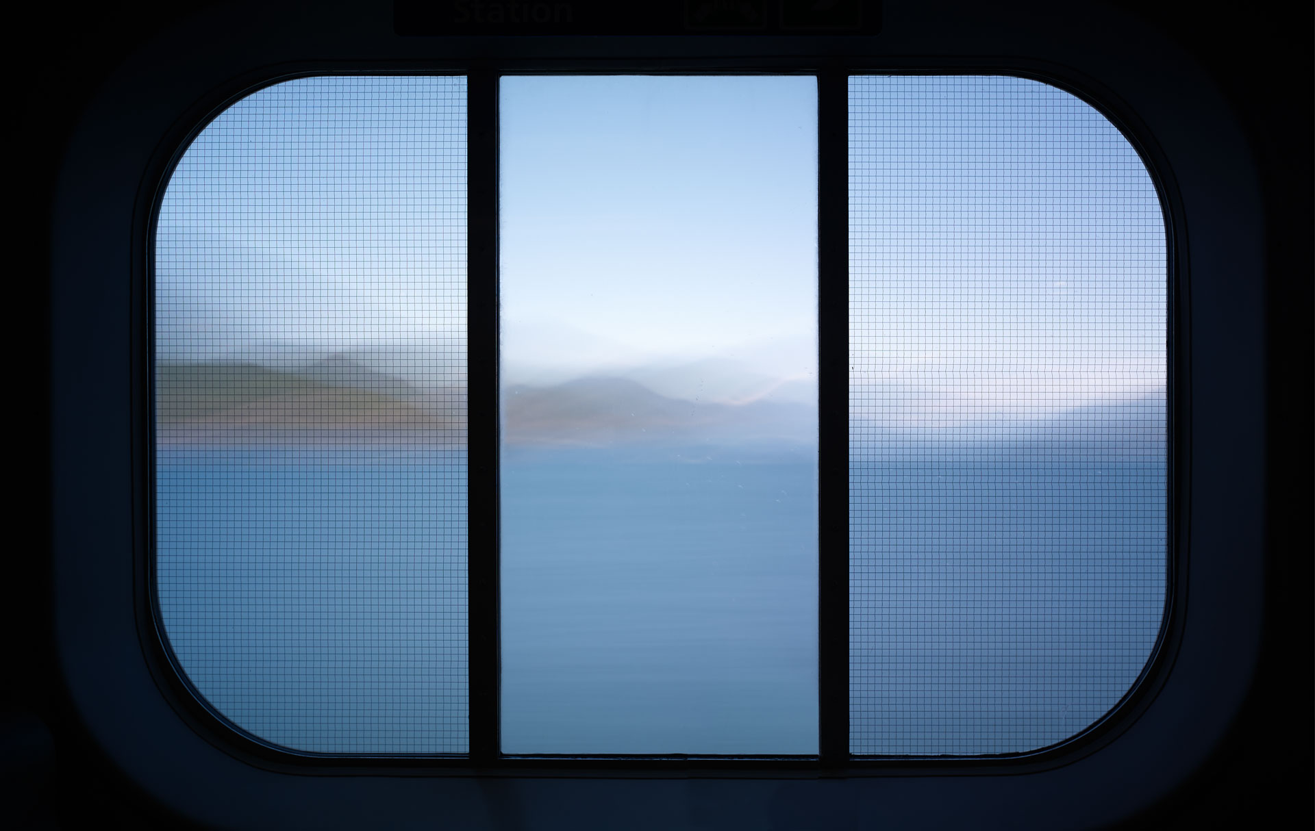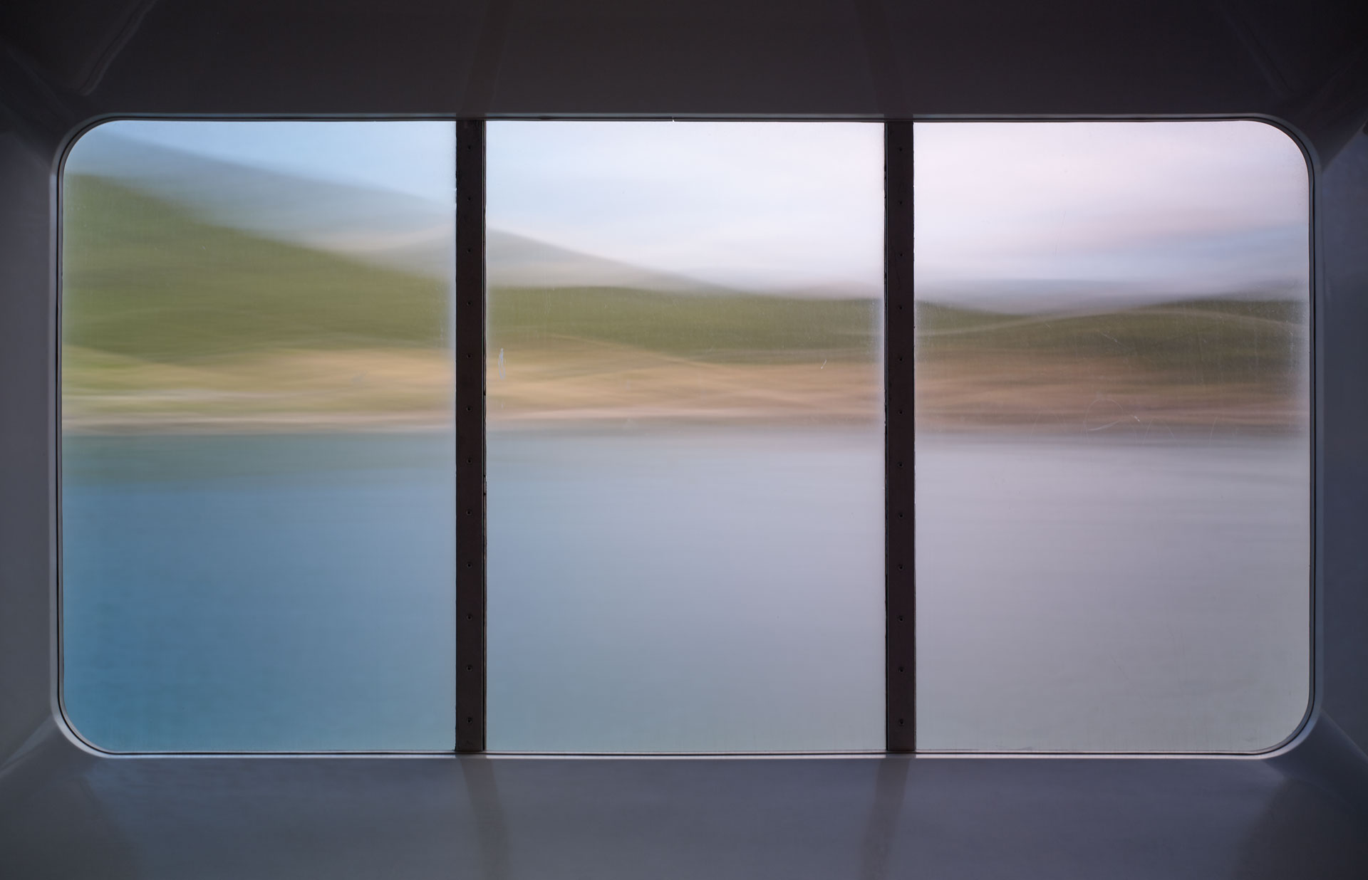 An extension of the ‘Time Passages’ collection – ‘Through the looking Glass’ brings the camera inside – shooting through the windows of the ferry, and using its frame, to create a cinematic experience for the viewer. The image begs the viewer to look into it, and at it, as the outside’ image through the window is an expression of the exterior surroundings, while the window itself is its own phenomenon, adding a texture of sea mist, scratches, and patina to the view. The frames of the window are reminiscent of a classic triptych / diptych.